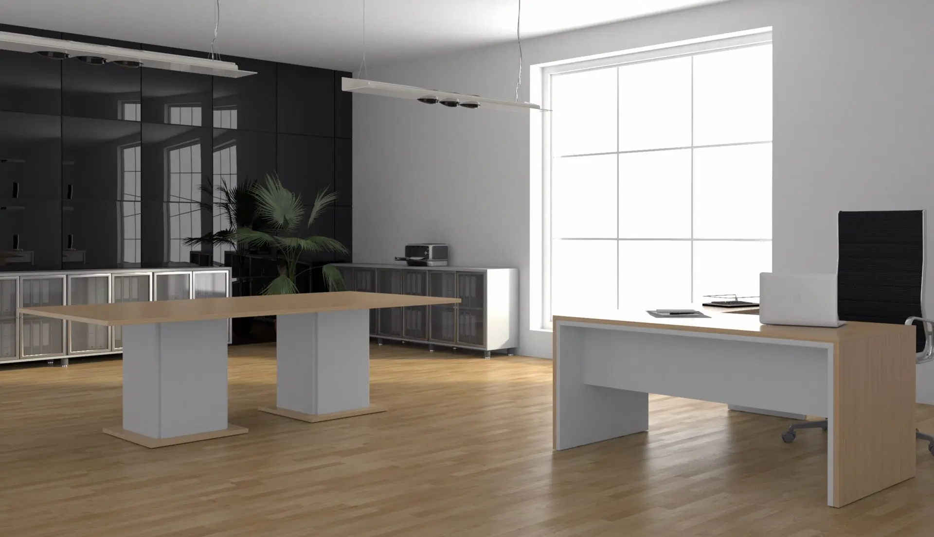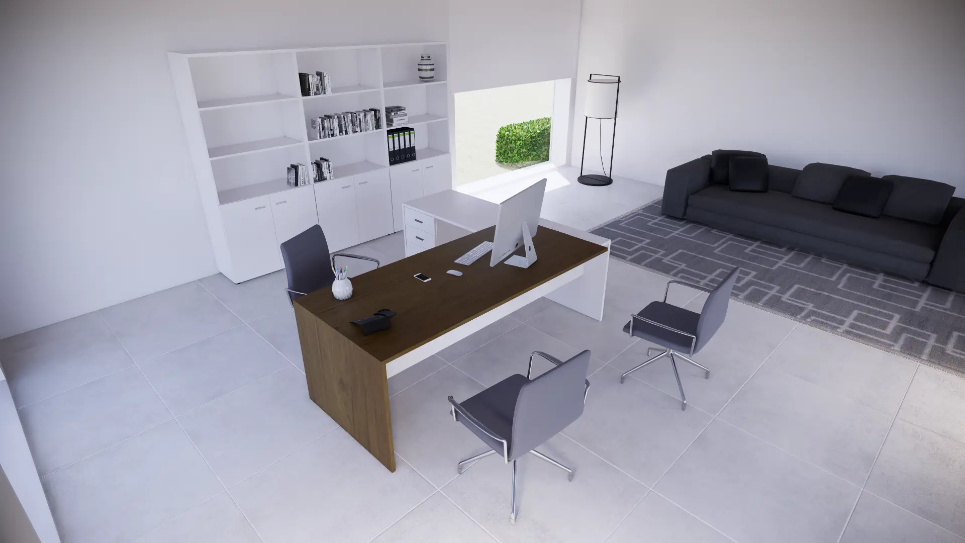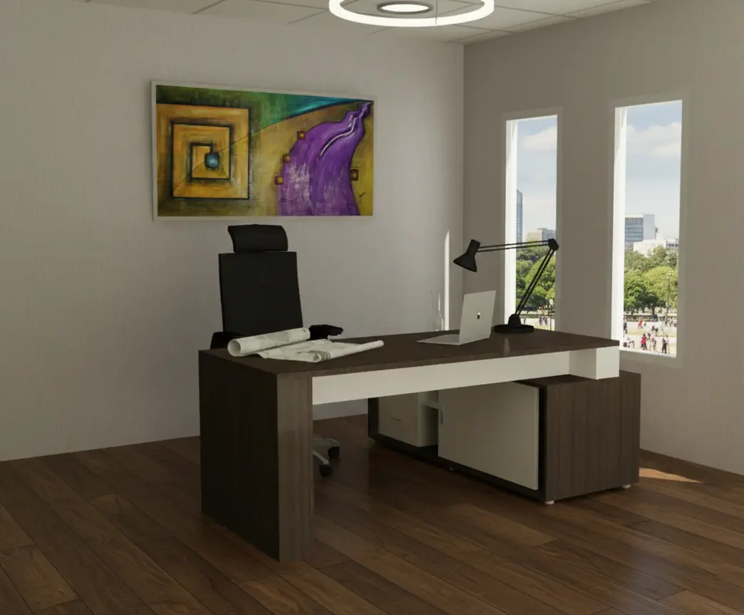 Su diseño sobrio, de líneas definidas y volúmenes sólidos, aporta presencia y coherencia visual en entornos ejecutivos, manteniendo al mismo tiempo funcionalidad y facilidad de implantación.