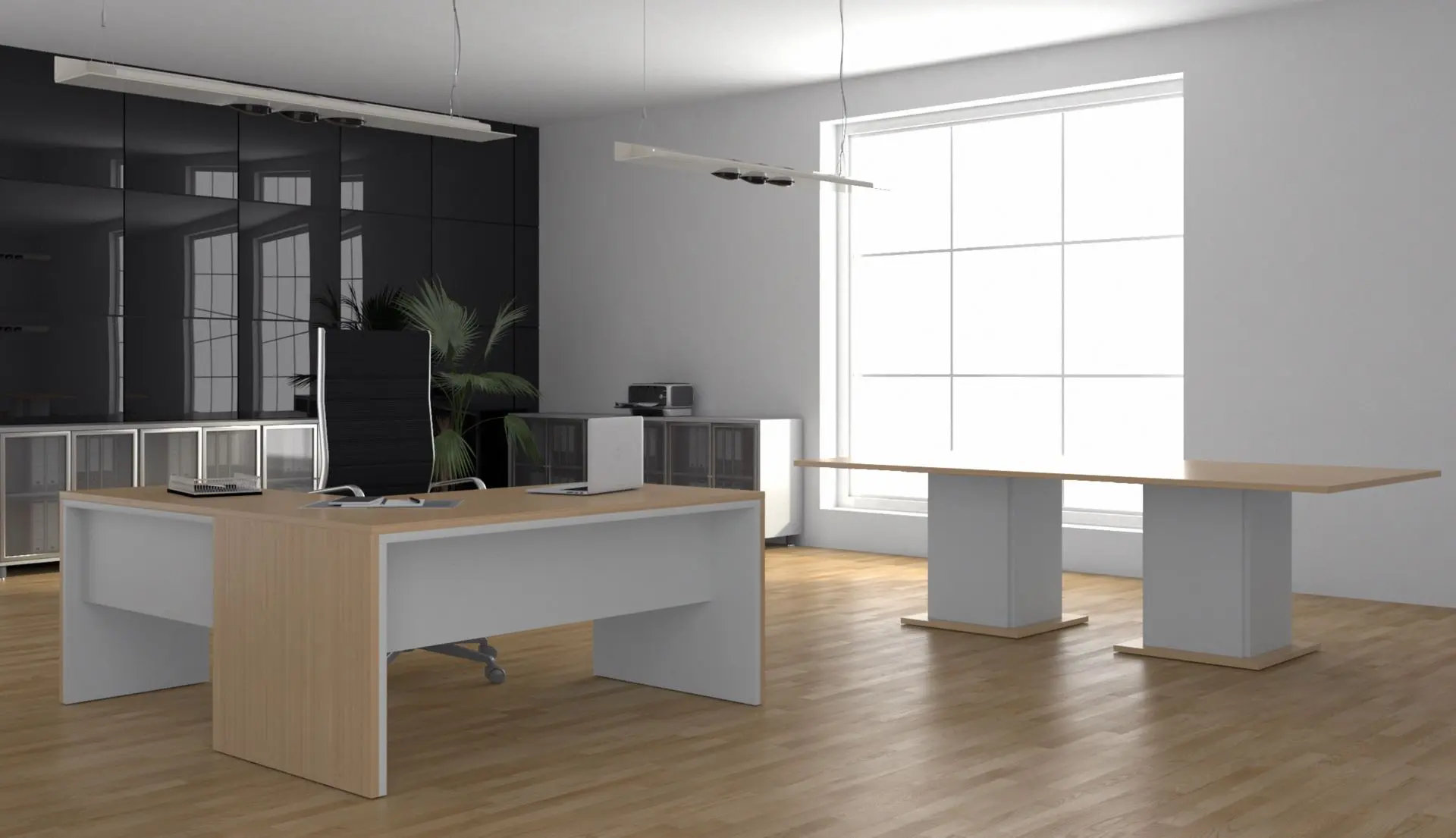 Su diseño sobrio, de líneas definidas y volúmenes sólidos, aporta presencia y coherencia visual en entornos ejecutivos, manteniendo al mismo tiempo funcionalidad y facilidad de implantación.